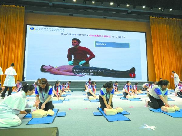 南充新闻网讯(南充市融媒体中心记者 李奎 文/图)为提升青少年应急救护能力,织密校园安全防护网,近日,南充高中临江校区组织部分学生在该校艺术中心参加南充市青少年应急救护科普培训。