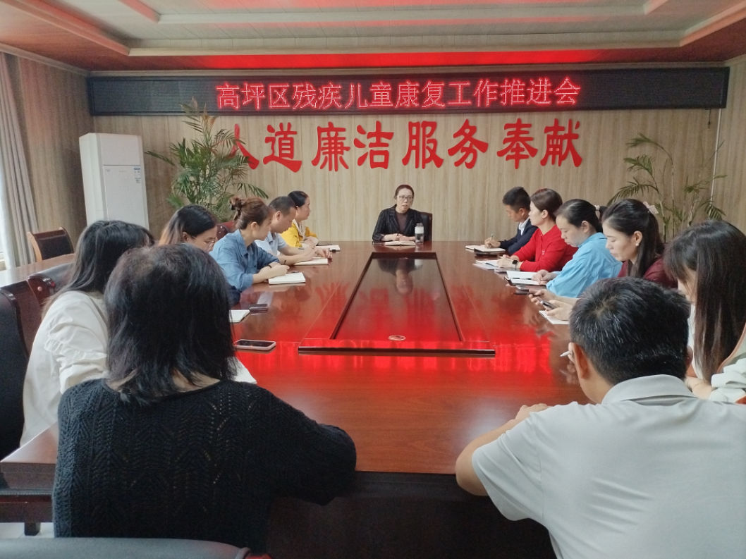 为扎实做好2025年儿童康复工作,打好第四季度收官之战,切实提升高坪区残疾儿童康复服务能力。9月30日,高坪区残联组织召开儿童康复工作推进会,区残联分管领导、康复股工作人员及各定点康复机构相关负责人参会。