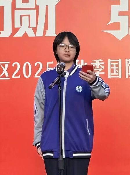 嘉陵校区高2024级3班明奕竹同学带来演讲《端牢中国碗,守望千秋粟》,将“土地的坚守”与“粮食的珍视”相串联,追问青春一代“如何接过守护‘中国碗’的接力棒”,字句间满是对粮食守护者的敬意,更让恩济苍生、滋养人间的爱粮情怀浸润人心。
