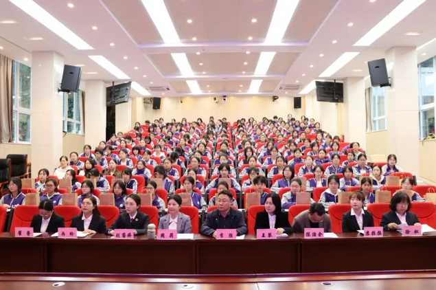 南充高中党委委员、副校长李胜在讲话中指出,南高有很多自立自强、追求卓越的优秀女生榜样,她们既有嘉陵江水的细腻温婉,更有莲子精神浸润出的自尊坚韧。他强调,成立“关爱女生委员会”是学校落实守护未成年女生身心健康的具体行动,是为给女同学们遮风挡雨、保驾护航而筑起的坚实后盾。他希望每一位女生都能以诚勇校训精神为基,乘着委员会的守护之风,乘风破浪、追光而行,用青春汗水书写精彩,不负时代,不负韶华!