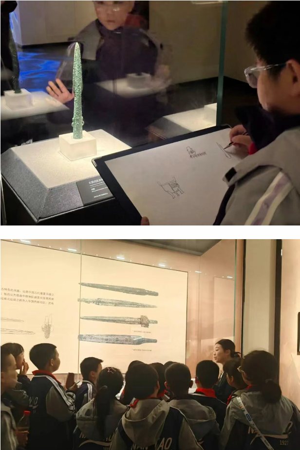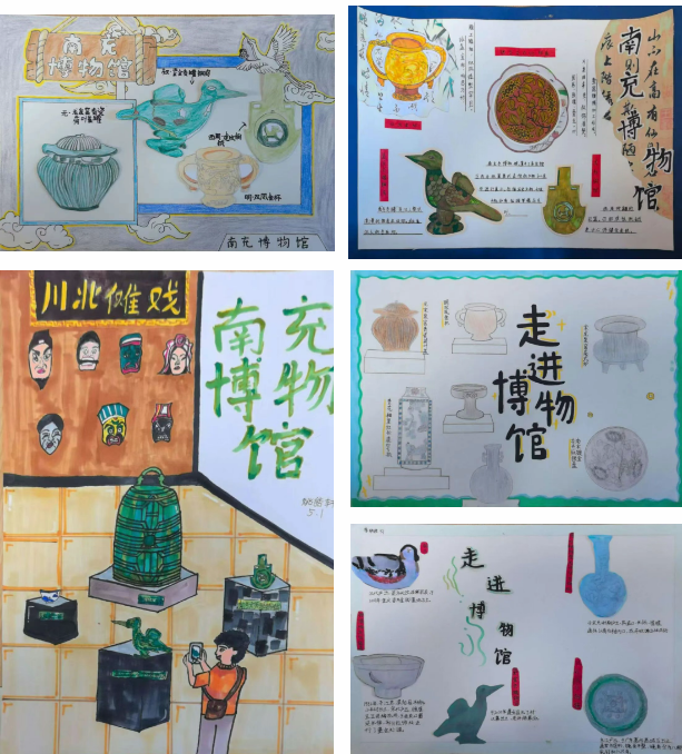 研学活动结束后,同学们满载收获回归校园。五年级的同学们将参观博物馆的所见所感融入画笔,精心绘制了一幅幅精美的海报。海报上,西周铜钺的威严、东汉铜鸟的灵动与宋代银盘的雅致被生动再现,文字注解中还标注了文物出土时间与历史价值,满含对家乡文化的热爱。