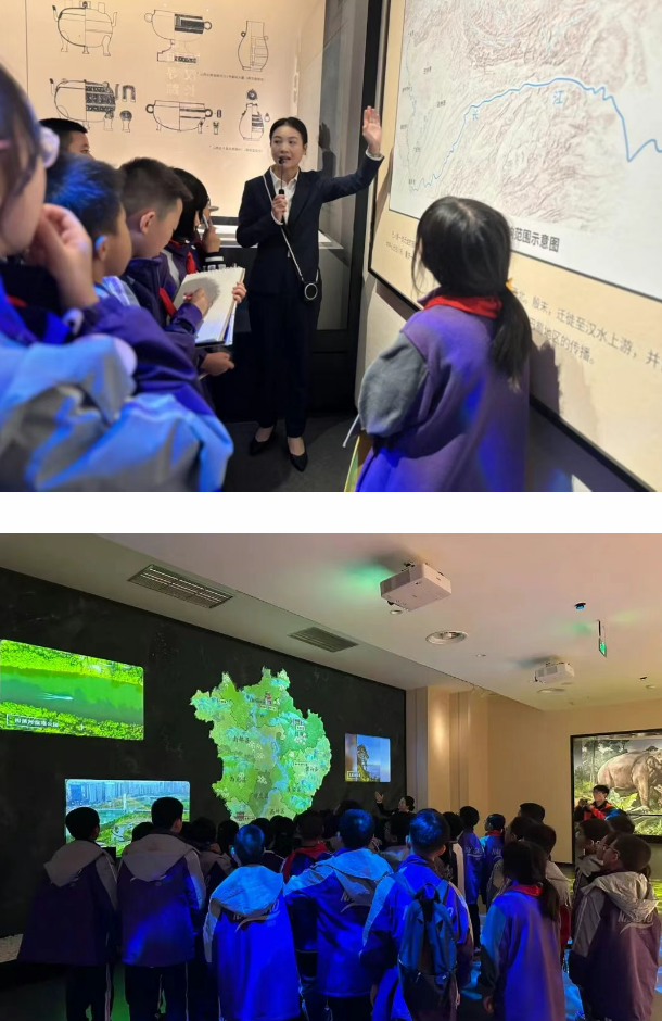 五年级的同学们踏入南充市博物馆,瞬间被浓厚的历史文化氛围所包围。在讲解员生动细致的引导下,大家首先走进核心展厅“嘉陵长歌”,这里陈列着南充各个历史时期最具代表性的文物,清晰勾勒出嘉陵江畔的文明印记。触摸嘉陵江畔的文明印记