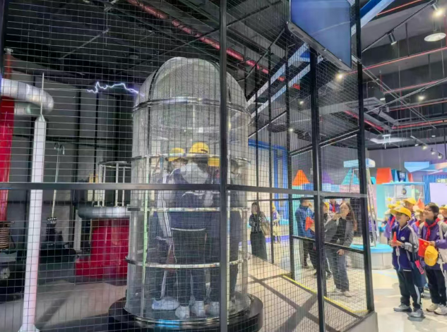 最令人兴奋的莫过于法拉第笼体验项目,当高压电弧在笼外滋滋作响时,笼内的同学们却安然无恙,在惊险与好奇中直观弄懂了静电屏蔽的科学原理。