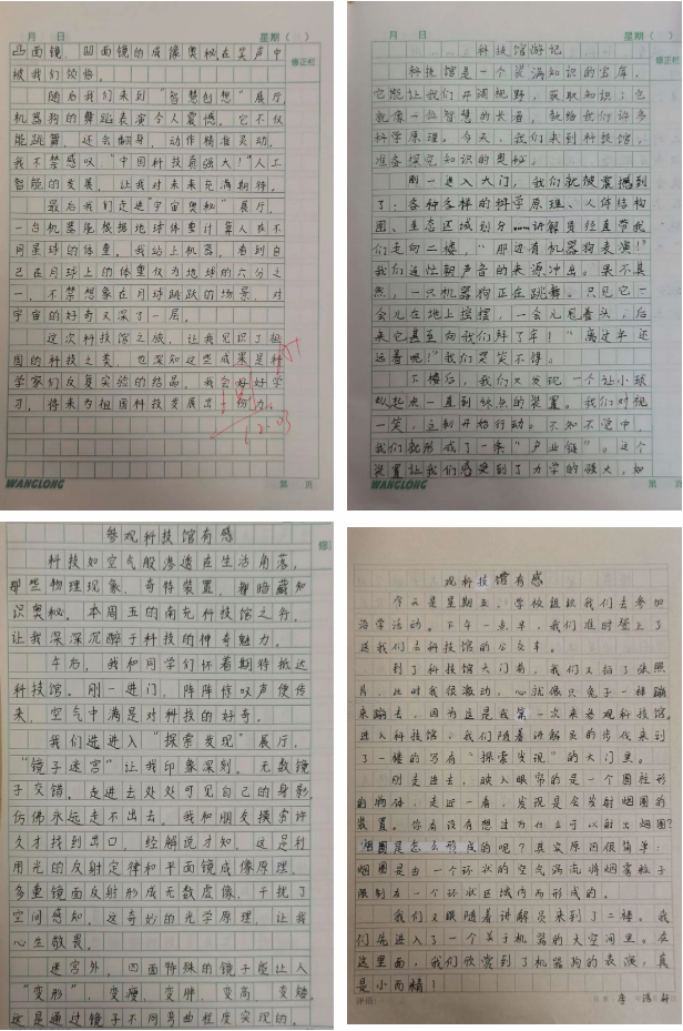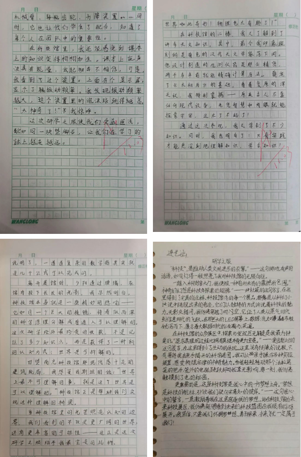 六年级的同学们则静下心来梳理研学感悟,撰写了一篇篇真挚的心得,字里行间既有对智能机器人、VR体验、法拉第笼实验的鲜活记录,更饱含着对人体科学的认知、对落下闳先贤的敬佩,以及探索科学奥秘的强烈渴望与报国决心。