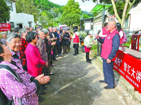 院坝中,几张方桌拼在一起,社区干部和居民们坐在板凳上,围成一圈。活动的“你问我答”环节气氛正酣,大家你一言我一语,畅所欲言。“我们组里的路灯有几个不亮了,能不能修一修?”“养殖场的消毒池该清理了。”面对居民们提出的一个个具体问题,社区党总支副书记陈中坤一边认真记录,一边点头回应:“大家提的问题我们都记下了,明天就安排人去看看。”他的笔记本上,已经密密麻麻写了大半页。
