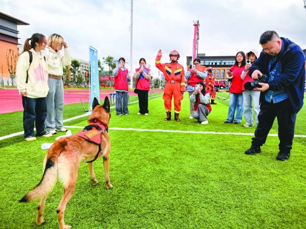 互动区通过消防知识小游戏、搜救犬表演等趣味环节,让消防知识深入人心。消防知识问答中,学生们积极抢答,在竞争中巩固了所学的消防知识。搜救犬表演更是精彩纷呈,聪明的搜救犬在消防员的指挥下,迅速准确地完成各项任务,赢得了师生们的阵阵掌声。