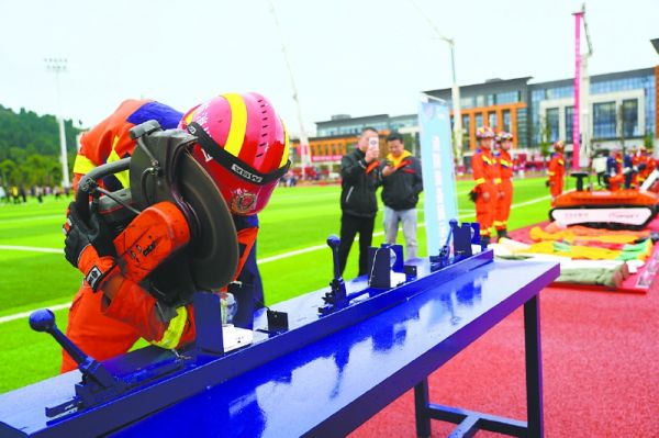 “一个假人有60公斤重,两个人用担架抬起来还是相当吃力的,这让我更加懂得消防员们的辛勤付出。”西华师范大学一名参赛选手对记者说。