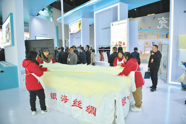 来自我国和意大利、法国、德国、加拿大、南非、吉尔吉斯斯坦等国家的丝绸品牌企业携带匠心之作惊艳亮相,琳琅满目的展品令人应接不暇。南充本地龙头企业带来了最新的研发成果,将蜀锦、蜀绣等传统工艺与时尚设计完美结合,推出的国潮系列丝绸服饰、文创、床上产品等备受追捧。