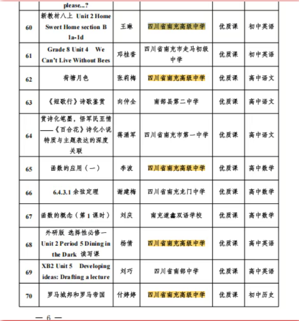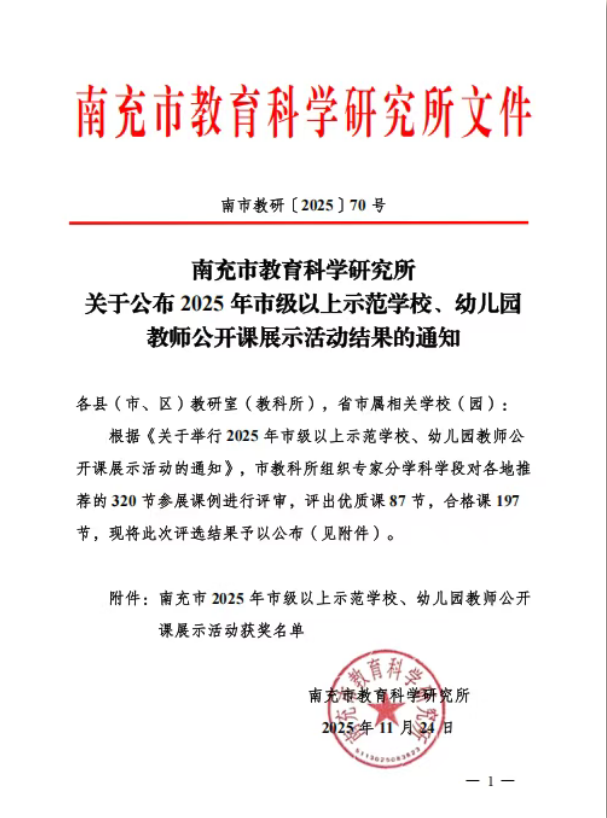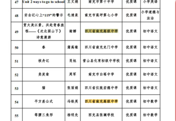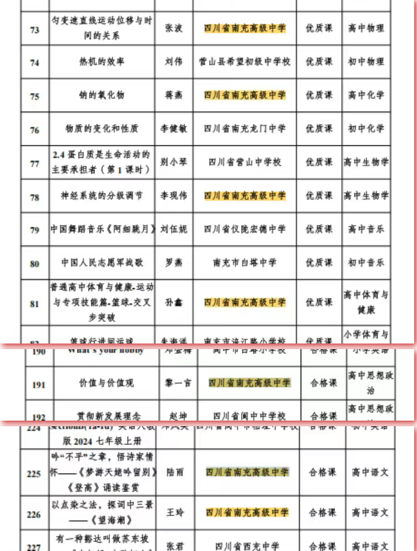 近日,从2025年市级以上示范学校、幼儿园教师公开课展示活动组委会传来喜讯,南充高中在此次高水平的教学竞技舞台上表现卓越,报送的课程作品斩获佳绩,充分展现了南高教师扎实的教学功底和先进的育人理念。