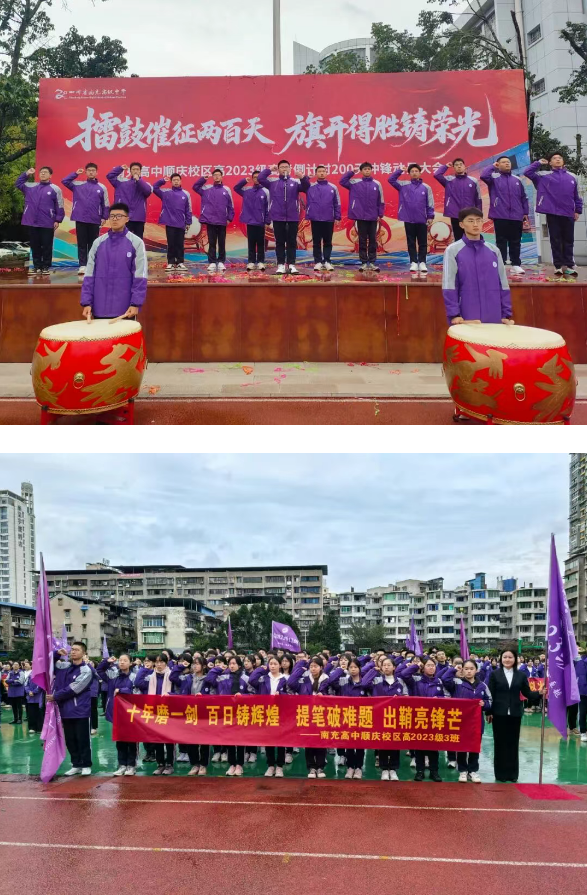 冬启新程,誓搏两百日。为激励高三学子坚定信念、全力备战2026年高考,11月17日上午,南充高中顺庆校区在运动场举行高2023级高考倒计时200天冲锋动员大会。