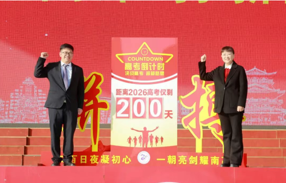 张莉梅副书记与年级支部杨秦飞共同为高三师生揭开2026年高考倒计时牌,标志着高考冲刺200天的新征程正式开启。倒计时牌上的数字每日递减,既是时光紧迫的醒目标志,也是鞭策学子分秒必争的动力,更将见证师生们“全力以赴备高考,鱼跃龙门折桂冠”的拼搏历程。