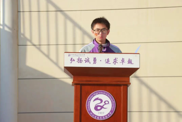 高三年级四位学生代表的诗朗诵道出了全体同学对未来的憧憬与决心,深情的语言与真挚的情感引发全场共鸣。随后他们带领全体高三学生高举右拳庄严宣誓,铿锵誓言响彻校园上空。