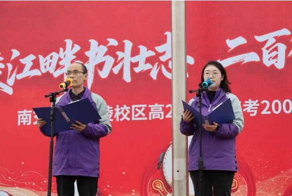 教师代表王洪秀以“两百天逐梦,耀南高百年”为主题发言,结合优秀学长案例,鼓励学生科学备考、坚韧前行。“那些凌晨的灯光、草稿纸上的演算,都是你们铺向理想的阶梯,”她动情说道,“南高老师将始终与你们并肩作战,让每一分钟都高效有力!”