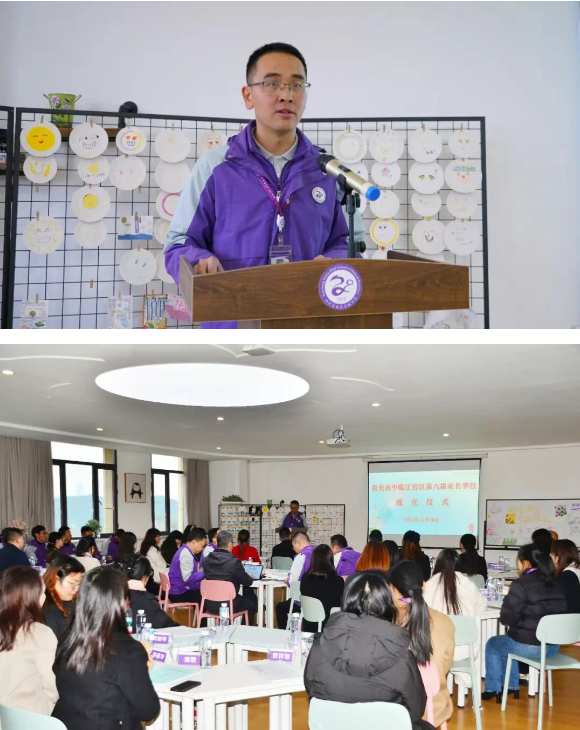 2025年11月19日下午,南充高中临江校区暖意融融,以“家校同心 家校同行”为主题的第六届家长学校成立仪式在各班教室与心理咨询中心圆满举行。出席本届家长学校成立仪式的有学校党委委员、工会主席、校区负责人陈祺文,临江校区副校长尹海波、刘刚,初高2025级全体班主任、年级党支部书记、年级组副组长、相关科室行政干部、服务学生代表和各班家长学校委员,通过沉浸式参与、深度互动体验、真诚化沟通,共同探索家校共育的全新密码。
