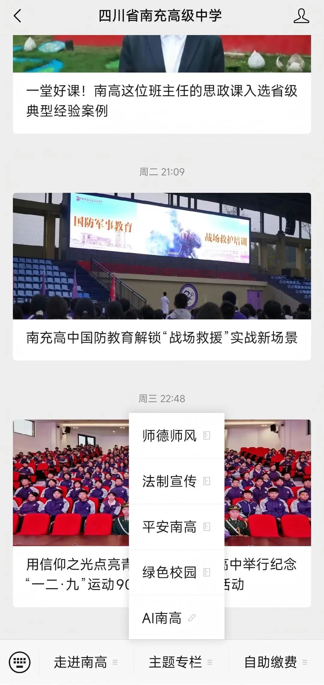 在宣传科的精心维护下,南充高中新媒体矩阵成果斐然。微信公众号粉丝量持续增长,多篇深度报道、校园快讯阅读量突破万次,多次入选教育类公众号影响力榜单前列;抖音平台凭借生动有趣的校园短视频,收获大量点赞与关注,成为展示南高风貌的热门渠道。无论是高考喜报、教研动态,还是校园活动、师生故事,经宣传科的精心策划与呈现,都能迅速引发广泛关注,让南高声音传得更广、更远。