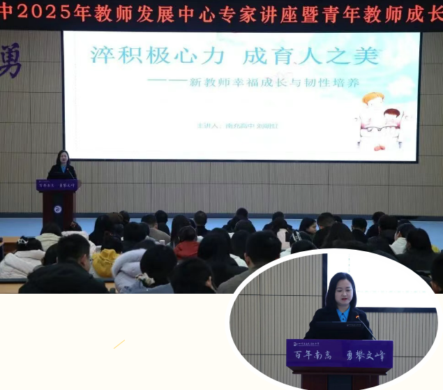 淬心赋能强根基,聚力成长育新人。此次活动彰显了南充高中对青年教师身心健康与职业发展的深切关怀,通过专家深耕心理赋能的专业引领与青年教师成长故事的经验分享,为青年教师搭建了心理调适、经验互鉴的优质平台。活动不仅帮助了青年教师筑牢心理韧性根基、提升职业幸福感,更凝聚了教师队伍奋进力量,为学校教师队伍建设注入了鲜活动力,助力学校在立德树人的征程上稳步前行,书写教育高质量发展的新篇章。