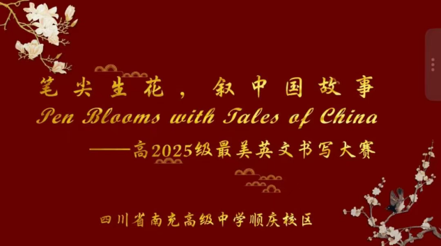 为了提升学生英文书写的规范性与艺术性,鼓励学生在书写中感受语言之美与文化交融的魅力,近日,南充高中顺庆校区举办了“笔尖生花,叙中国故事——最美英文书写”大赛,高2025级全体学生积极参与,以笔墨为媒,用英文讲述中华文化。