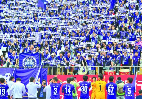 “川超”南充队球员向球迷致谢。南充市融媒体中心记者 乐校臣 摄