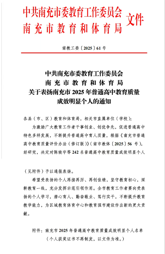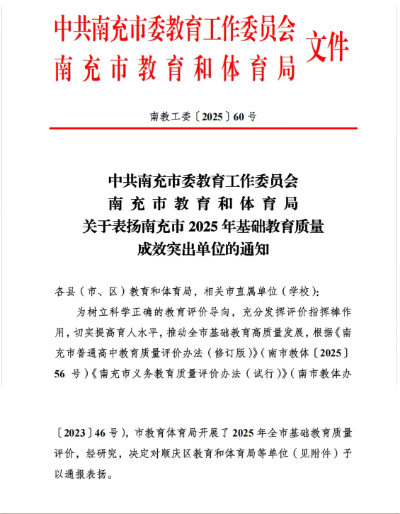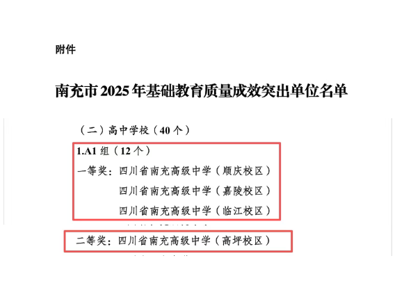 喜报!南充高中捧回33项市级基础教育质量表彰