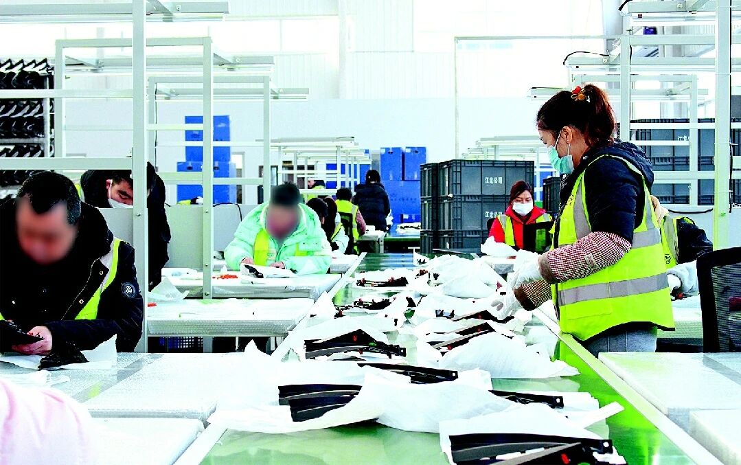 走进3800平方米的生产车间,记者注意到,与常规科技感车间不同,这里的操作台经过特殊适配调整,视觉标识清晰直观,能精准满足不同残疾人员工的作业需求。6条生产线整齐排列在车间两侧,工人们正有条不紊地进行汽车零部件的分装等工作。