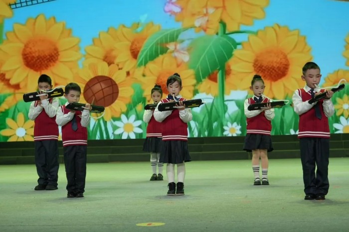 二年级学子开启语言初章,《Walking in the Jungle》情景剧中,低段学子化身可爱小动物,用流利英语对话、歌唱,把语言启蒙谱成生动童话;杂技魔术素养课上,小将同台尽显芳华,小荷初露锋芒;科学奥秘惊艳亮相,趣味魔法接连解锁;《跆风少年》飒爽英姿,气势如虹;口风琴兴趣班奏响《春天在哪里》,悠扬琴声寻觅春之踪迹;童趣歌声藏着岁月温暖,日常点滴皆是《小美满》时光;音空管乐团的小小演奏家们合奏《鸿雁》《歌唱祖国》,管乐旋律裹挟家国情怀,全场起立鼓掌,为这场素养诗篇画上温暖句号。