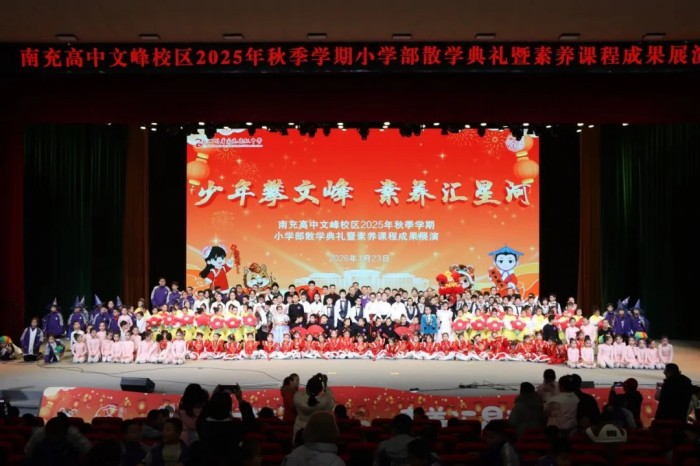 冬阳漫染飞檐,暖光轻拂黛瓦。2026年1月23日,南充高中文峰校区伯农大礼堂暖意与期待交织,一场镌刻成长、盛满温情的盛会悄然铺展。“少年攀文峰·素养汇星河”,小学部2025年秋季学期散学典礼暨素养课程成果展演,在师生与家长的殷殷目光中,缓缓拉开温柔帷幕。这是“文宝莲娃”们写给时光的成长告白,更是家校同心,共赴少年成长之约的温暖相聚。