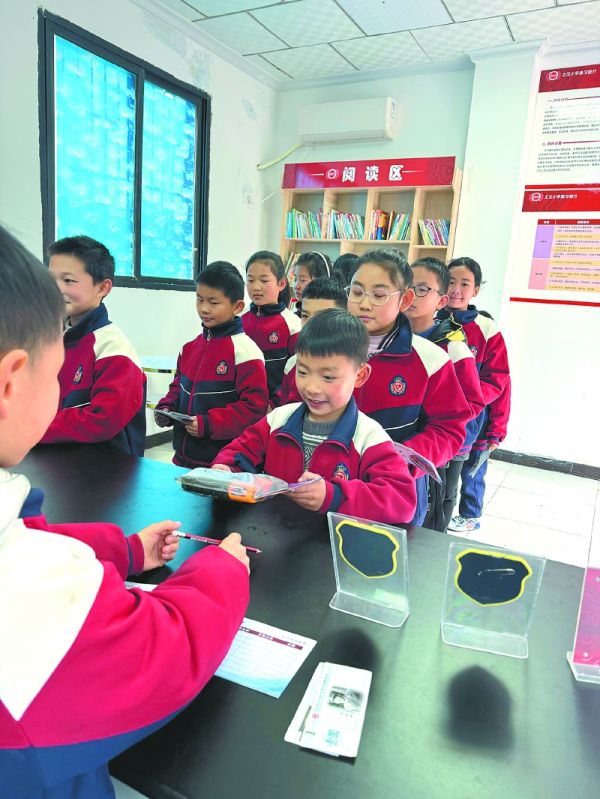 学生在学校“美习银行”兑换学习用品、校园荣誉勋章等。