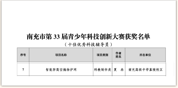 本次大赛,我校共选送7件学生作品、2件科技辅导员作品参赛。学生作品荣获一等奖2项、二等奖2项、三等奖3项;教师作品荣获一等奖1项、三等奖1项。其中,夏冉老师凭借优异的表现,获评“十佳优秀科技辅导员”,为学校科技教育工作再添荣光!