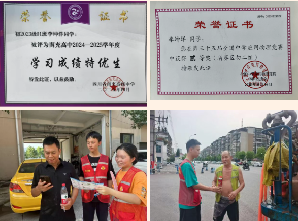 优秀事迹:学习能力突出,态度积极进取,善于归纳总结、举一反三,知识吸收与应用能力强,学业成绩班级名列前茅。担任学习委员、英语科代表、化学科代表,责任意识与服务精神强,认真协助老师完成教学任务,是老师信赖的得力助手;主动为同学答疑解惑,带动班级形成互帮互助的优良学风。团队协作与沟通能力出色,积极参与班级活动策划与执行,团结同学、携手共进;面对问题善于多角度思考、提出创新方案,思维品质优秀。日常学习生活认真细致、全力以赴,多次获评校级“三好学生”“优秀学生”。热心社会实践,寒暑假积极投身志愿服务,参与“夏日送清凉”活动,为高温户外劳动者送去饮用水与降温物资。未来将永葆热忱与执着,秉承南高“诚勇”校训,不断突破自我,以实际行动践行榜样力量。