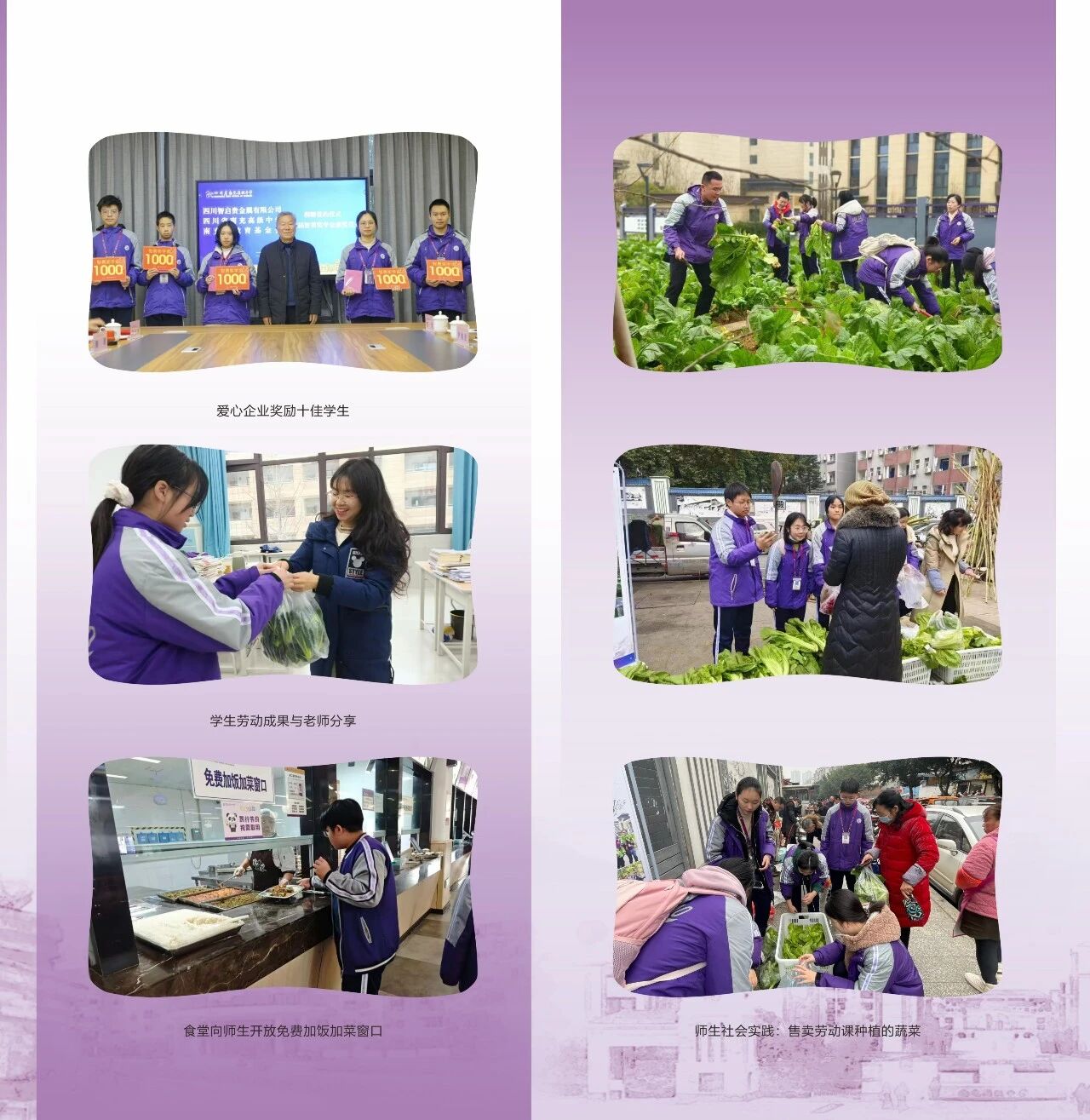 五年来,学校成功探索出与南充中专、南充市特殊教育学校开展“普职共建”“普特融合”等合作新模式,打造传统劳动实践基地、智慧农业实践基地、生活技能实践基地、汽车美容工作坊,通过“讲堂+实践+品鉴”的跨学科模式,将劳动教育与传统文化传承深度融合,创新开展假期家务劳动与社会实践活动,组织学生到社区、福利院、养老院、垃圾分类站参加服务性劳动。