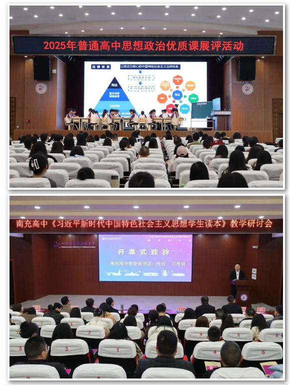 承办2025年四川省高中思想政治优质课展评活动;组织召开《习近平新时代中国特色社会主义思想(学生读本)》教学研讨会;开展新生年级“十荣十戒”与《航标》专项学习测试;创新实施班主任应知应会知识测试;组织学生开展“弘扬伟大抗战精神”系列主题教育;依托莲池书院组织开展“身心同调——开启三键人生的钥匙”“亮堂且欢喜,处处见生机”等传统文化讲座5次。
