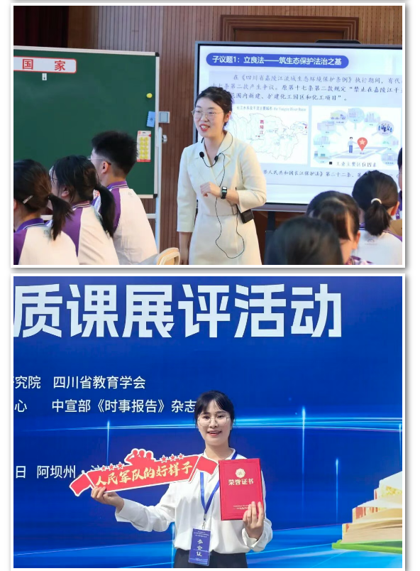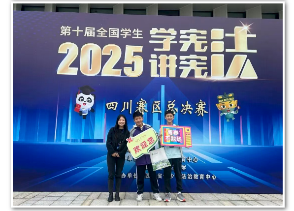 王宇轩老师荣获四川省2025年高中思想政治优质课省一等奖及中小学法治课教师与法治副校长微课比赛一等奖;谭薇薇老师荣获四川省《习近平新时代中国特色社会主义思想(学生读本)》高中优质课展评第一名;何弘睿老师荣获全市班主任基本功大赛第一名并入选全省经典经验案例。董未已同学荣获2025年全国中学生“学宪法 讲宪法”四川赛区演讲比赛一等奖。