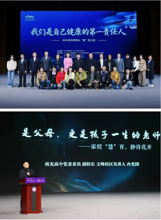 2025年,四川省家庭教育公益宣传活动《天府家长“慧”》在南充举办,文峰校区作为协办单位,南充高中副校长冉光国作《家校携手 共育花开》专题分享;后续,校区还为初二、高一年级家长开展《是父母,更是孩子一生的老师》专家讲座,从青少年心理问题切入,深入剖析家庭教育的深层命题,为家校共育赋能增效。