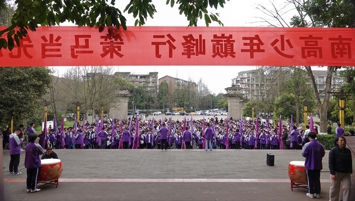 2026年3月9日,春寒料峭,南充市西山风景区却洋溢着青春的热血与激情,开汉楼前战旗猎猎,口号震天,属于青春的壮丽画卷正徐徐展开。四川省南充高级中学顺庆校区为高2023级的学子们举行“马踏山巅我为峰 剑指六月傲群雄”为主题的高考倒计时90天逐梦巅峰行活动。