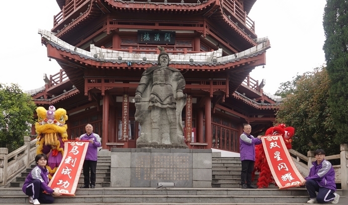 一场精彩的舞狮表演拉开了序幕。学校党委书记涂刚与校长王尚明共同为祥狮点睛,寓意着学校对学子们的殷切期望和美好祝愿。点睛仪式庄重而神圣,涂刚和王尚明小心翼翼地为祥狮点睛,随着最后一笔的落下,从狮口揭榜“双星闪耀,马到成功”,祥狮仿佛被赋予了生命,栩栩如生,威武霸气,全场师生爆发出热烈的掌声,欢呼声此起彼伏。