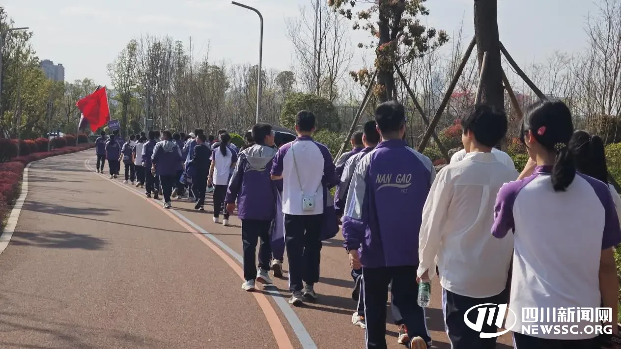 下午2:30,高考冲刺徒步环节正式启程。徒步路线从南充高中临江校区诚勇广场出发,沿诚勇路、府荆路、府荆南路三段、府荆南路一段,最终抵达南充市城北公园夕霞广场,全程约3.5公里。