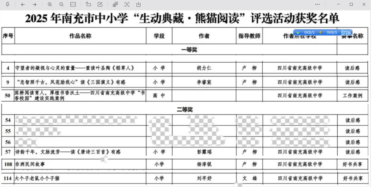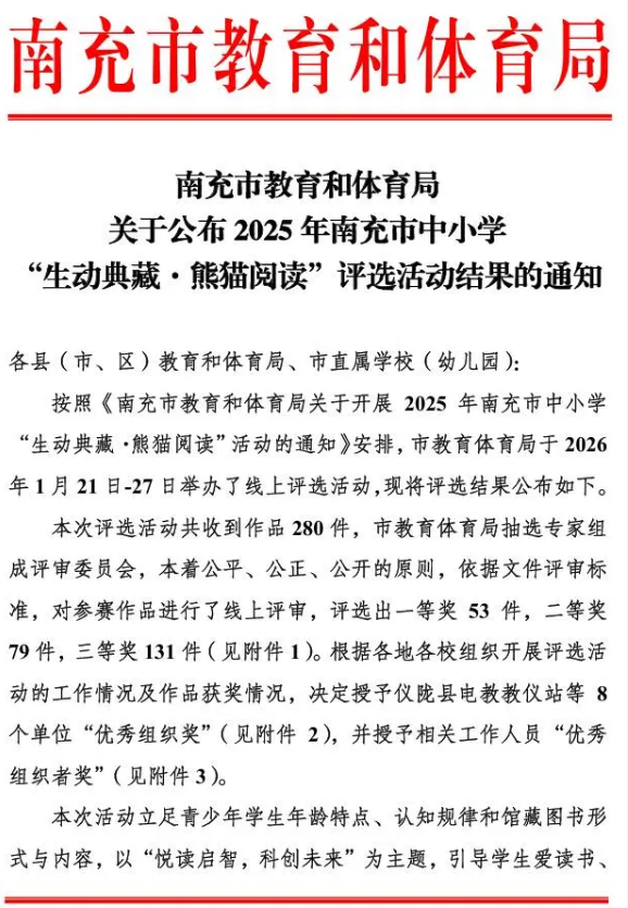 书香太浓!南充高中在全市“生动典藏·熊猫阅读”评选活动中斩获多项大奖