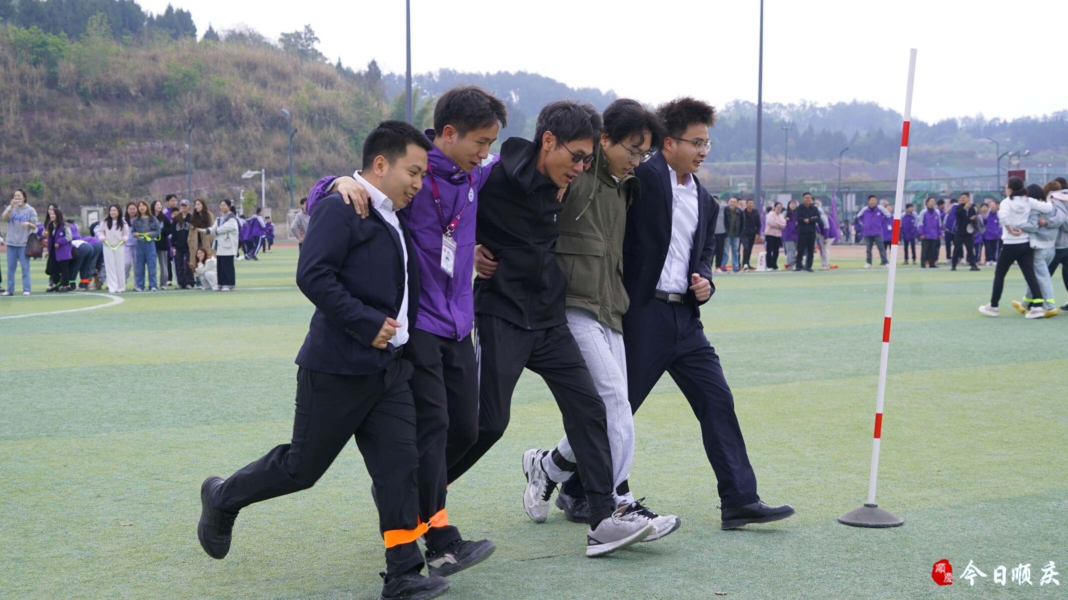 据了解,本届运动会为期3天,覆盖高一、高二、初一、初二四个年级,赛事设置兼顾竞技性与趣味性。单项赛事中,100米、200米、800/1000米跑、跳远、实心球、铅球等项目考验个人实力;集体项目里,5人6脚绕杆接力、20×30米迎面接力、4×400米混合接力等项目凸显团队协作,全方位调动了学生参与热情。