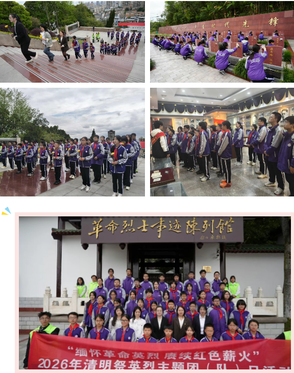 南充高中顺庆、嘉陵、临江、高坪、文峰五校区联动,以“缅怀先贤志,清明踏青行”为主线,分层次、分类型开展系列清明主题思政实践活动。从纪念馆里的深情凝望,到烈士陵园中的躬身擦拭;从诗词课堂里的文化寻根,到国旗下铿锵有力的青春誓言——南高学子在行走中触摸历史,在仪式中唤醒责任,在传统中汲取力量。
