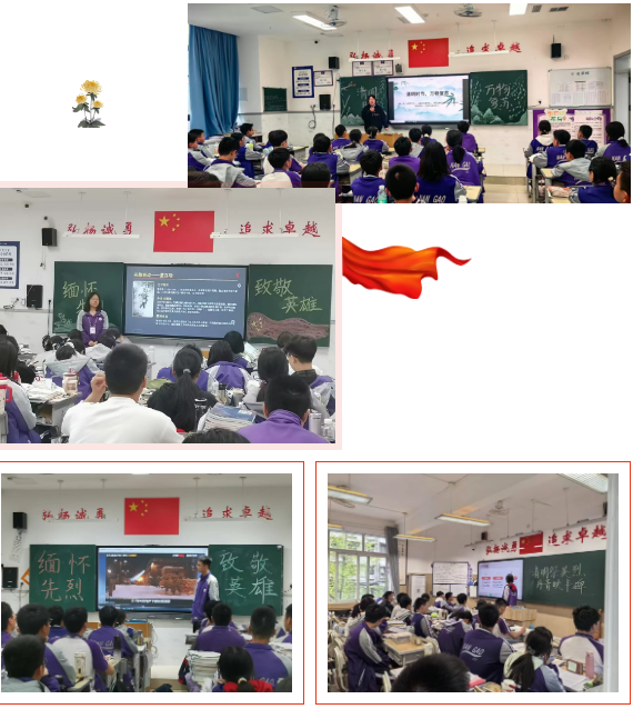 小学部的课堂上,孩子们睁大眼睛聆听英雄故事,用稚嫩的笔触画下心中的红旗,在老师的引导下说出最朴素的誓言:“好好学习,向上向善。”初中部的教室里,同学们分享英烈事迹、朗诵红色诗歌,在交流中慢慢读懂“牺牲”与“珍惜”的分量。高中部的班会则更多了一份思辨与担当——他们讨论和平年代的英雄精神,思考个人理想与国家命运的交织。
