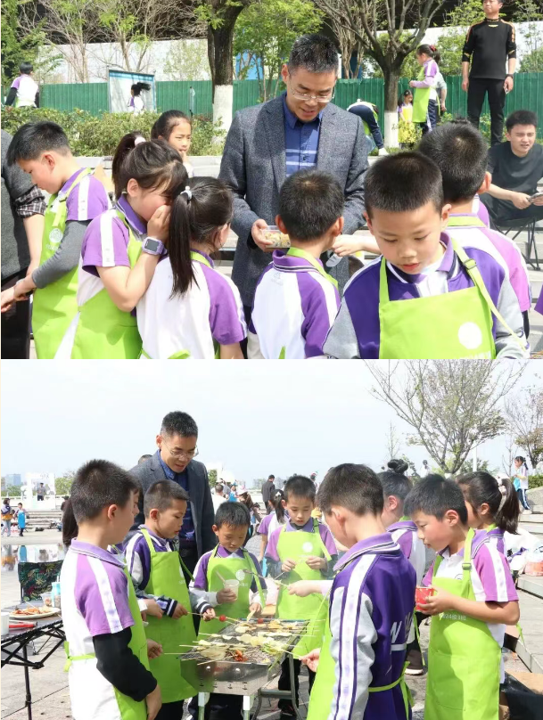 一年级的宝贝们在鲁老师的带领下,跳起了欢快的律动操,唤醒一整天的活力!阳光、微风、草地,就是最好的运动场;二年级的“过家家”野炊现场,洗小手、分生熟、不挑食、不浪费……活动开始前,孩子们先上了一堂生动的 “健康安全课”。