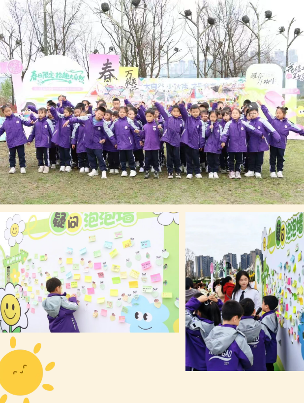 一年级的问题泡泡墙上,贴满了宝贝们的小疑问、小发现;小讲解员环节,宝贝们拿起小话筒,用稚嫩的声音分享 “我发现水珠能变彩虹”“我知道风筝怎么飞得高”,表达的快乐在开口中慢慢发芽;春日才艺秀上,歌声、舞蹈、朗诵轮番上演,宝贝们在舞台上闪闪发光,自信又可爱。