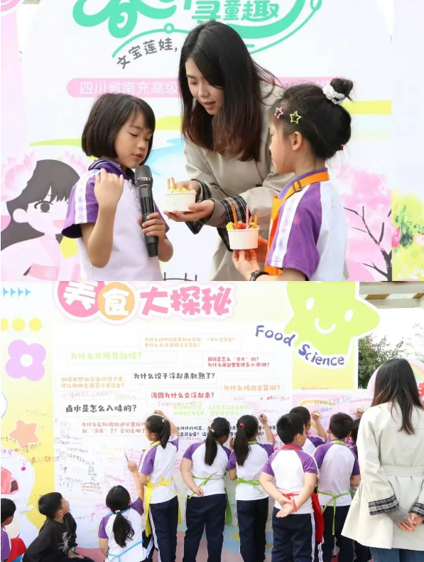 二年级的“美食科学家”们,自信地站在大家面前提问:“为什么饺子浮上来就熟了?”“烤肉冒的烟是什么?”分享自己做美食的小过程、发现的小奥秘。