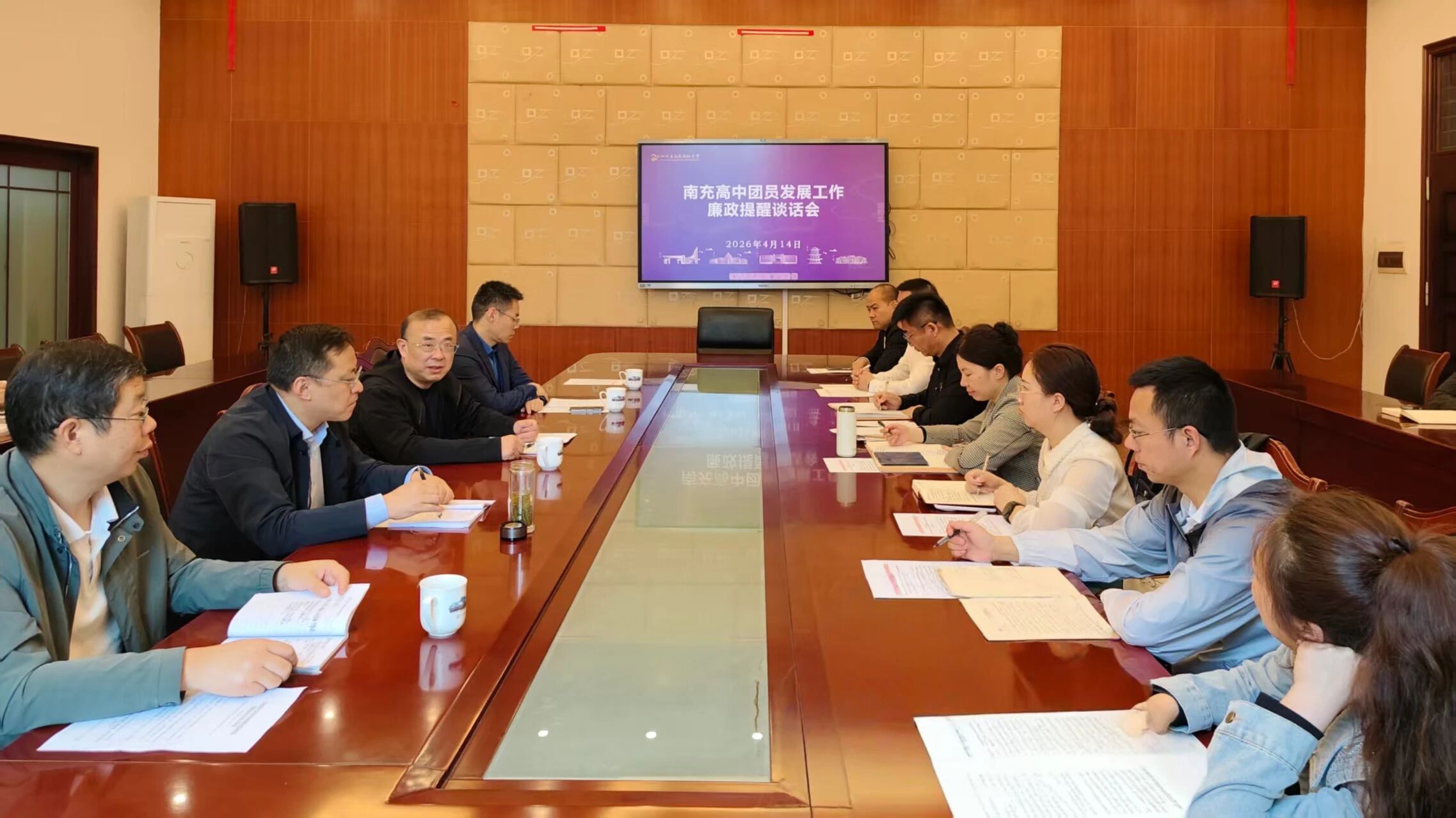4 月 14 日上午,南充高中2026 年度团员发展工作廉政提醒谈话会在顺庆校区召开。南充高中党委书记涂刚、副校长冉光国、纪委书记杨涛出席会议,各校区分管副校长、团委及纪检监察室全体干部参加会议。