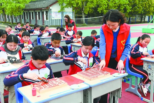 学生们在志愿者的指导下亲手体验,制作出一幅幅飘散着浓浓墨香的诗词、生肖印刷作品,在活动过程中感受中华传统文化的广博深厚,树立自觉传承与弘扬中华优秀传统文化的意识。(王玉贵 摄影报道)