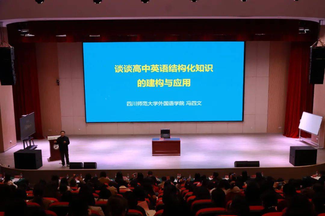 四川师范大学外国语学院冯四文教授以《结构化知识的建构与应用》为题,对比传统阅读教学与结构化阅读教学差异,同时向与会教师呈现高中英语结构化知识的建构与应用策略。
