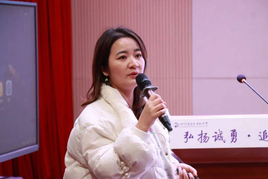 教育部何涛名师工作室成员、南充高中高中英语王琴名师工作室主持人王琴对这两堂课进行评课,她从“目标精准度”“思维可视化”等维度点评课堂,肯定结构化教学成效并提出优化建议。