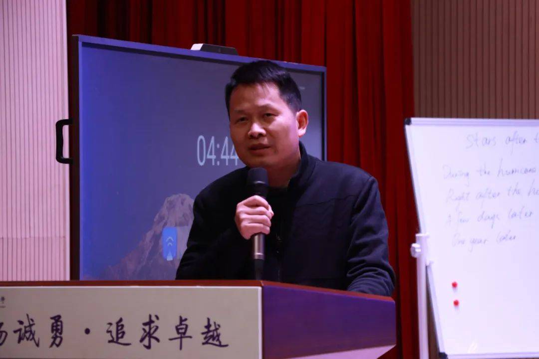 何涛对本次研修活动进行总结,并提出了“两人两事一主题”评课模式以及“Four R”教学模式的有效性,强调“理论实践互哺、教研共生共长”。