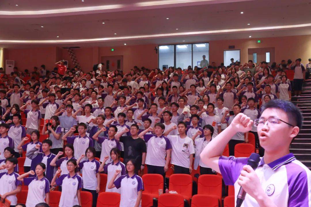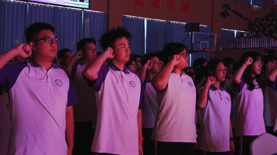 学校党委委员、工会主席陈祺文带领高三毕业生进行成人礼宣誓