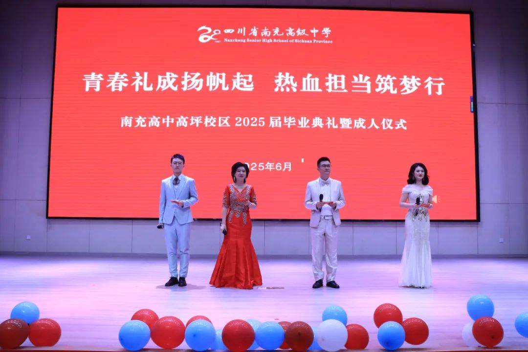 6月19日,南充高中高坪校区举行了2025届毕业典礼暨成人仪式。党委书记涂刚,党委副书记、校长王尚明,党委副书记张莉梅等全体领导班子成员亲临现场,为初三、高三学子送上成长祝福。活动通过网络视频号同步直播,家长们在线见证学子们的青春蜕变时刻。